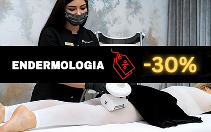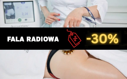 - Endermologia, Kriolipoliza, Fala Radiowa i Ultradźwięki, Fala uderzeniowa, Kwasy i pozostała oferta na twarz i na ciało z kosmetologii i fizjoterapii estetycznej – 30%,