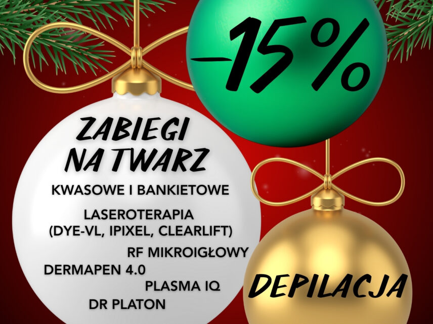 Zbliżające się tygodnie to szczególny okres w roku, w którym spotykamy się z rodziną i przyjaciółmi. Każdy z nas chce wówczas wyglądać dobrze i czuć się zadbanym. Dlatego przygotowaliśmy specjalną promocję na ZABIEGI NA TWARZ -15%.